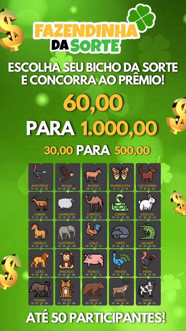 O SORTEIO SERÁ REALIZADO APÓS A VENDA DE TODOS OS NÚMEROS PELO RESULTADO JOGO DO BICHO RJ!